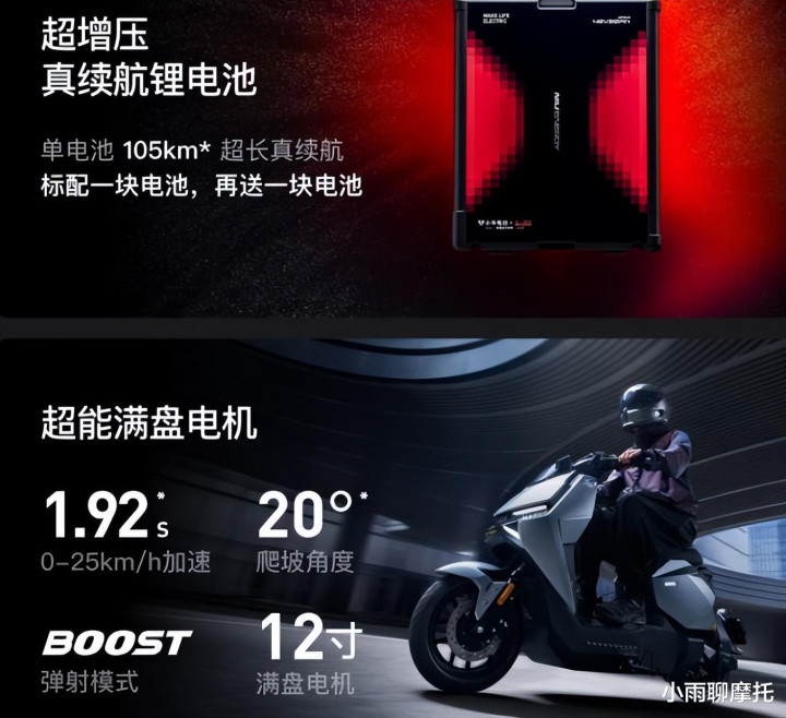 FXT Ultra搭载400W电机,配有新能安48V 30Ah锂电池,且标配一块送一块,标称续航为105km,电池耐低温。